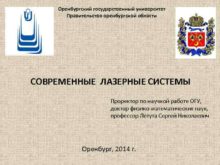 Оренбургский государственный университет Правительство оренбургской области СОВРЕМЕННЫЕ ЛАЗЕРНЫЕ
