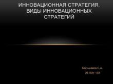 ИННОВАЦИОННАЯ СТРАТЕГИЯ ВИДЫ ИННОВАЦИОННЫХ СТРАТЕГИЙ Большаков С А