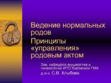Ведение нормальных родов Принципы управления родовым актом Зав