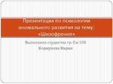 Презентация по психологии аномального развития на тему Шизофрения
