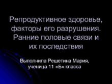Репродуктивное здоровье факторы его разрушения Ранние половые связи