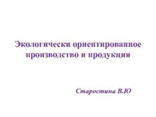 Экологически ориентированное производство и продукция Старостина В Ю