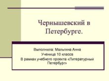 Чернышевский в Петербурге Выполнила Мальгина Анна Ученица 10