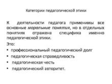 Категории педагогической этики К деятельности педагога применимы все