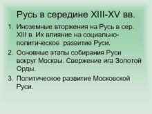 Русь в середине XIII-XV вв 1 Иноземные вторжения
