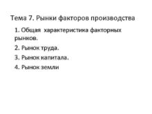 Тема 7 Рынки факторов производства 1 Общая характеристика