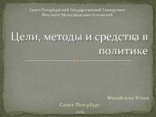 Санкт-Петербургский Государственный Университет Факультет Международных отношений Цели методы