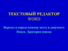 ТЕКСТОВЫЙ РЕДАКТОР WORD Переход к определенному месту в