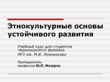 Этнокультурные основы устойчивого развития Учебный курс для студентов