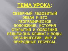 ТЕМА УРОКА СЕВЕРНЫЙ ЛЕДОВИТЫЙ ОКЕАН И ЕГО ГЕОГРАФИЧЕСКОЕ