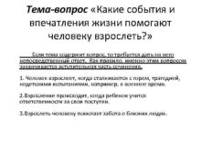 Тема-вопрос Какие события и впечатления жизни помогают человеку