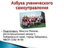 Азбука ученического самоуправления Подготовил Максим Попков регистрационный номер