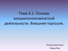 Тема 4 1 Основы внешнеэкономической деятельности Внешняя торговля