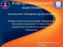 Кафедра специальной подготовки Дисциплина Пожарная профилактика Профессиональная подготовка
