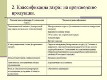2 Классификация затрат на производство продукции Признак классификации