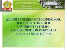 АНАЛИЗ УЧЕБНО-МЕТОДИЧЕСКОЙ ВОСПИТАТЕЛЬНОЙ И АДМИНИСТРАТИВНОХОЗЯЙСТВЕННОЙ РАБОТЫ ЗА 2015