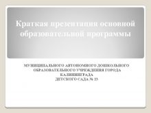 Краткая презентация основной образовательной программы МУНИЦИПАЛЬНОГО АВТОНОМНОГО ДОШКОЛЬНОГО