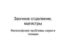 Заочное отделение магистры Философские проблемы науки и техники