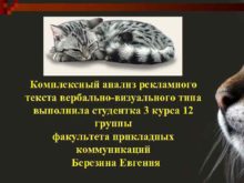 Комплексный анализ рекламного текста вербально-визуального типа выполнила студентка