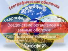 Воздействие организмов на земные оболочки Воздействие организмов на