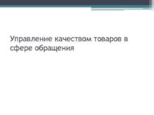 Управление качеством товаров в сфере обращения Управление