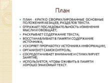 План ПЛАН КРАТКО СФОРМУЛИРОВАННЫЕ ОСНОВНЫЕ ПОЛОЖЕНИЯ АБЗАЦЕВ