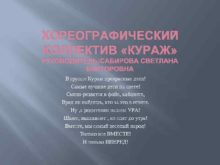 ХОРЕОГРАФИЧЕСКИЙ КОЛЛЕКТИВ КУРАЖ РУКОВОДИТЕЛЬ САБИРОВА СВЕТЛАНА ВИКТОРОВНА В