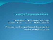 Развитие Ленинского района Исполнитель Федотовских Елизавета ученица 8
