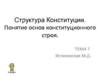 Структура Конституции Понятие основ конституционного строя ТЕМА 7
