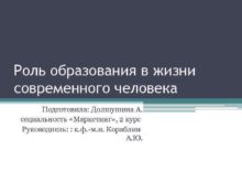 Роль образования в жизни современного человека Подготовила Долшушина