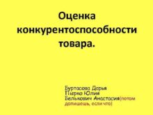 Оценка конкурентоспособности товара Буртасова Дарья Пырко Юлия Белькович