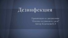 Дезинфекция Презентация по дисциплине Основы сестринского дела Автор