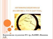 АНТИИНФЛЯЦИОННАЯ ПОЛИТИКА ГОСУДАРСТВА Выполнила студентка 271 гр