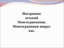 Построение сечений Многогранников Многогранники вокруг нас Геометрические