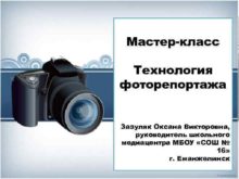 Мастер-класс Технология фоторепортажа Зазуляк Оксана Викторовна руководитель школьного