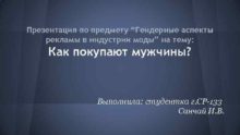 Презентация по предмету Гендерные аспекты рекламы в индустрии