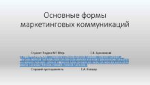 Основные формы маркетинговых коммуникаций Студент 3 курса МТ
