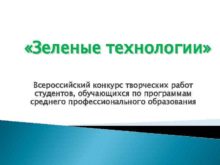 Зеленые технологии Всероссийский конкурс творческих работ студентов