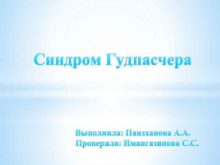 Синдром Гудпасчера Выполнила Паизханова А А Проверила Имангазинова