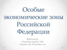 Особые экономические зоны Российской Федерации Выполнили Студенты группы