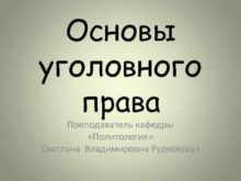 Основы уголовного права Преподаватель кафедры Политология Светлана Владимировна
