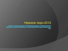 Невское перо-2012 25 ЯНВАРЯ 2012 ГОДА СОСТОЯЛОСЬ ТОРЖЕСТВЕННОЕ