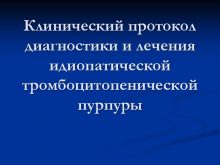 Клинический протокол диагностики и лечения идиопатической тромбоцитопенической пурпуры