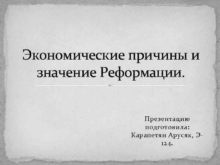 Экономические причины и значение Реформации Презентацию подготовила Карапетян