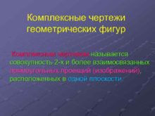 Комплексные чертежи геометрических фигур Комплексным чертежом называется совокупность