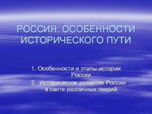 РОССИЯ ОСОБЕННОСТИ ИСТОРИЧЕСКОГО ПУТИ 1 Особенности и этапы