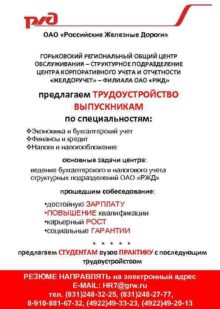ОАО Российские Железные Дороги ГОРЬКОВСКИЙ РЕГИОНАЛЬНЫЙ ОБЩИЙ ЦЕНТР