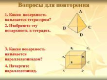 Вопросы для повторения 1 Какая поверхность называется тетраэдром