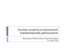 Система запретов и ограничений внешнеторговой деятельности Выполнили Рябова