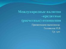 Международные валютно -кредитные расчетные отношения Презентацию выполнила Головкина
